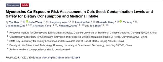 贵州中医药大学中药资源研究团队在薏苡仁食用与药用安全性研...