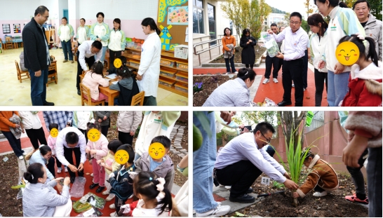 座谈结束后,全体党员一同参观了园区情景模拟教室、中医文化体验区等特色教学空间,深入课堂与孩子们亲切互动,细致了解幼儿的学习生活状况及康复进程。在幼儿园的种植角,我支部为此次活动精心准备了12种富有教育意义的中药植物,通过指导小朋友们观察姜黄、探索苍耳子、剥皂角种子,以及现场种植药用植物等互动,让孩子们在亲身实践中直观地领略中医药文化的魅力,同时也进一步充实了园区的中医文化体验环境。