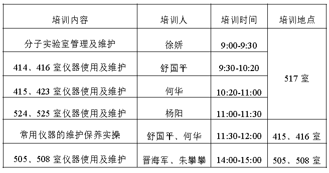 请本学期申请使用相关实验室及仪器的学生,务必参加此次培训(名单附后)。